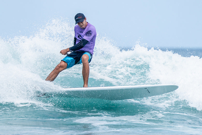 • Twin T-stringers made from glass fibre are positioned on the deck and bottom of the board close to the rail, providing a massive increase in the overall strength against total breakage in the surf.