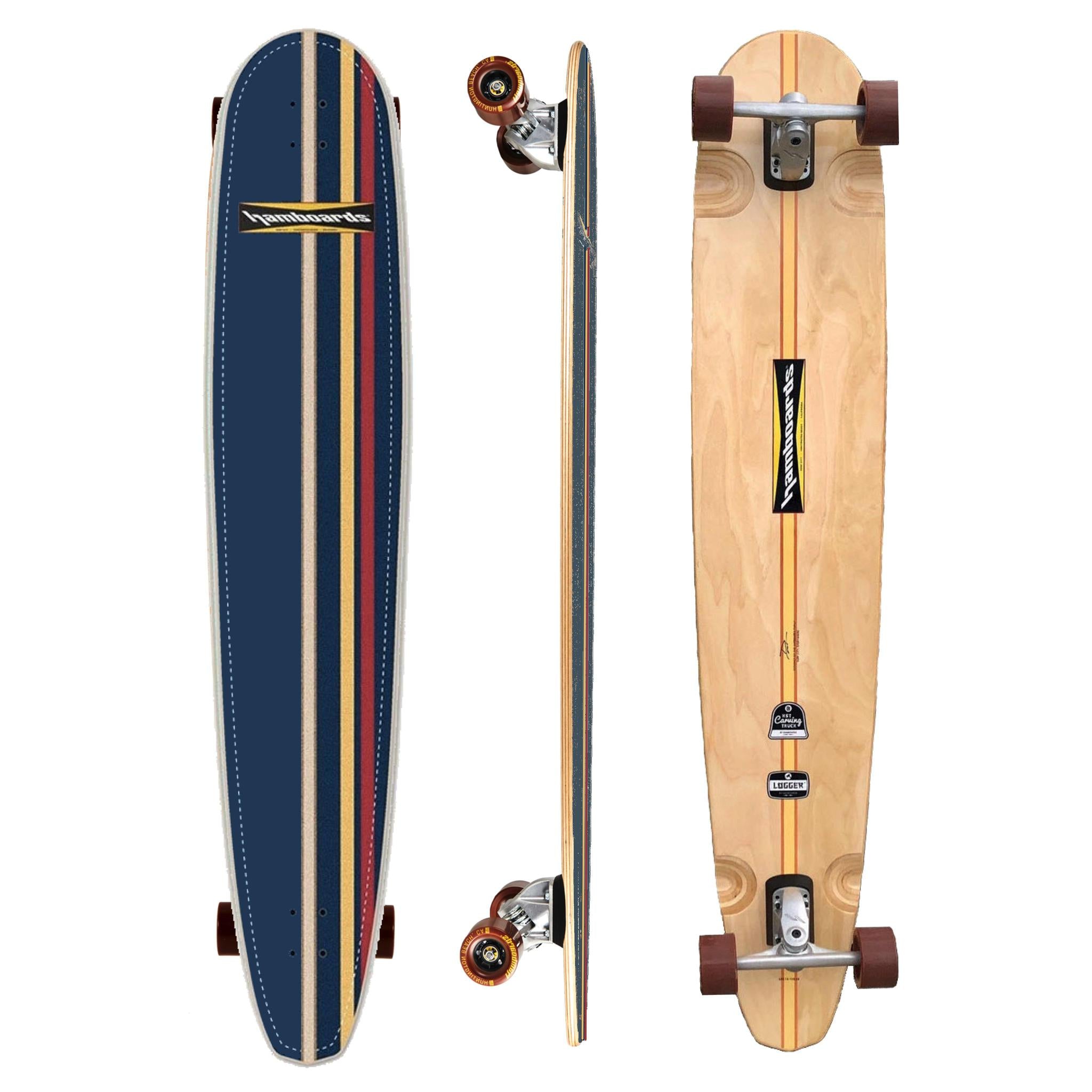 Choose the HST truck set which suits your skill and style. All HST trucks give 30° degrees of board lean and allow the ultimate rail-to-rail flow They are mounted on massive 24mm riser blocks and clad with a set of Hamboards signature chocolate brown 83mm cast polyurethane wheels. The wheels are buttery smooth and super grippy.