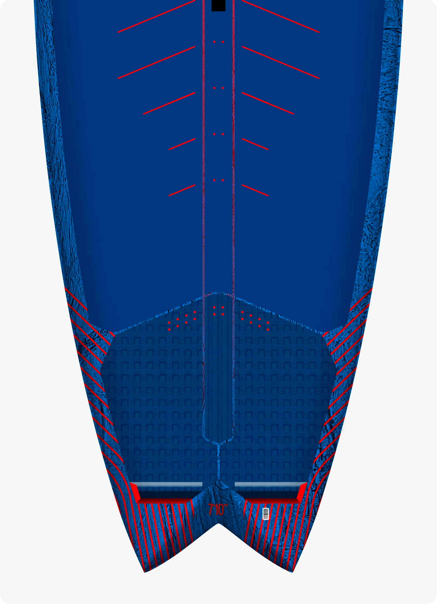All new bespoke surf inspired and improved kick by KT Surfing ® to save weight. The tail kick gives you that locked in feel, grip and confidence during maneuvers and turns.