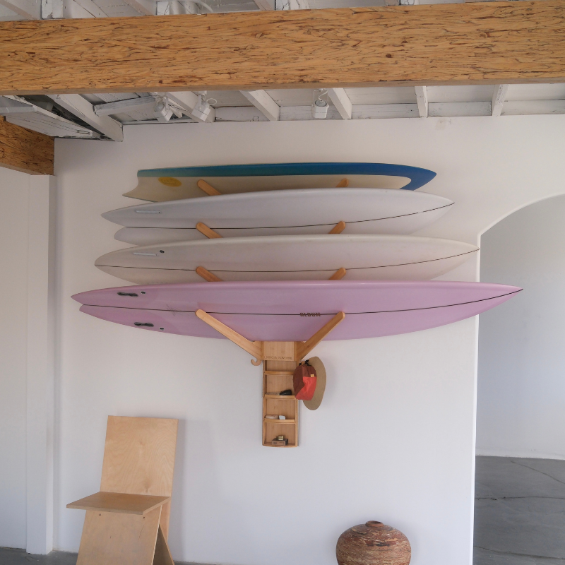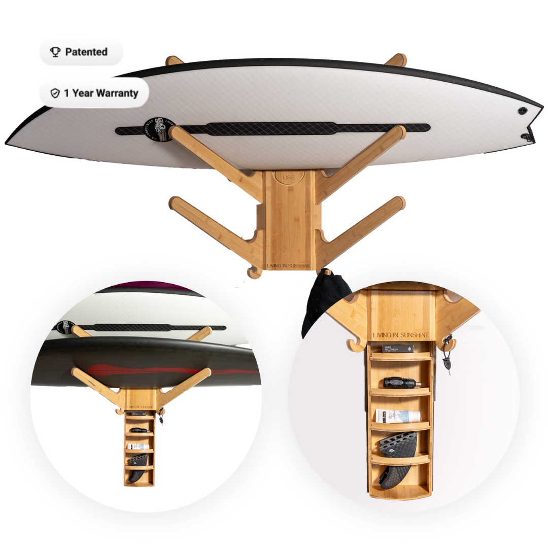 Universal fit holds boards up to 10 ft and up to 60 lbs per shelf
